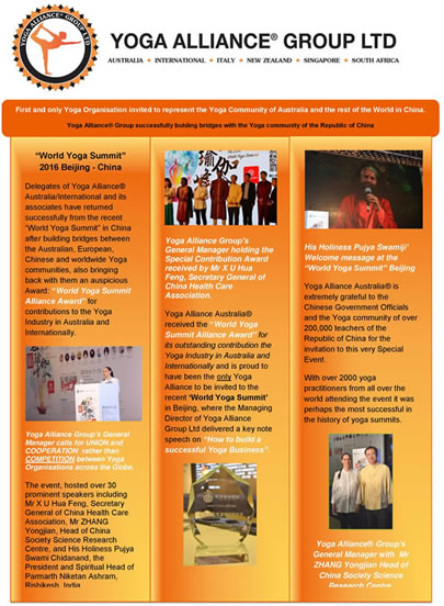 Yoga Alliance®-International/Australia Sponsor of the “World Yoga Summit” Beijing 2016
